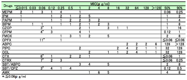 メタロ-β-ラクタマーゼ産生グラム陰性菌の背景因子と薬剤感受性